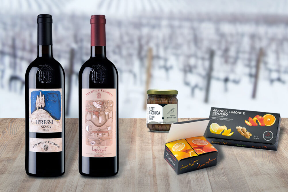 Nasce da questa semplice intuizione il nuovo lotto del Michele Chiarlo Wine Club, dedicato in esclusiva ai suoi membri. Perché non provare ad abbinare il Nizza a due prodotti della tradizione diametralmente opposti? Da una parte le acciughe sott’olio, piatto povero che, tramite gli «acciugai» giungeva fin nel cuore del Monferrato e spesso veniva trasformato nella più celebre delle salse contadine: la bagna cauda. Dall’altra il cioccolato, cibo degli dèi, nobile per origine ed eccellenza dei mastri cioccolatai piemontesi, di cui Bodrato è uno dei più famosi.